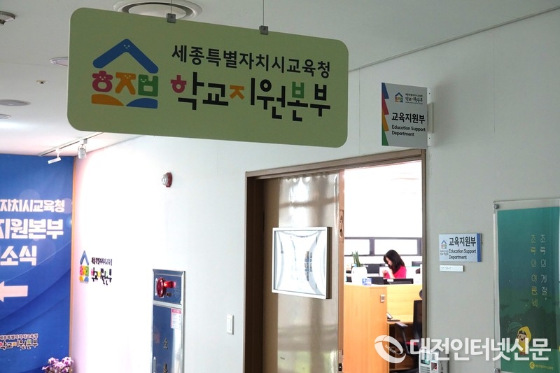‘세종학교지원본부’는 본부장실, 교육지원부, 행정지원부 사무실을 세종시교육청 4층에 마련했으며, 화해중재부와 시설지원부 사무실을 기존 임차 건물에 그대로 남겼다.