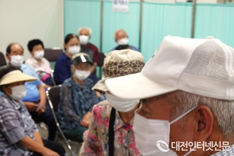 무료 한방진료가 시작되자 마자 진료실에 모이신 어르신들. [사진-대전인터넷신문]