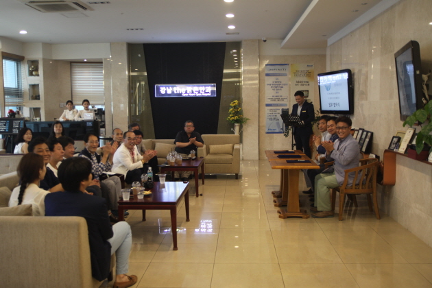 | ▲ 양 단체장 소개 후 박수를 치고 있다. |