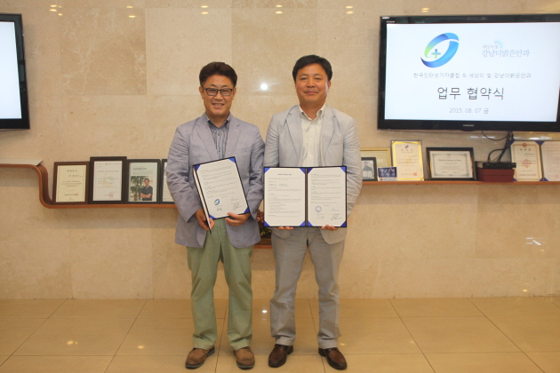 이철근 대한노래연습장업협회중앙회장과 장소명 강남더밝은안과 행정원장이 지난7일 업무협약 체결했다.