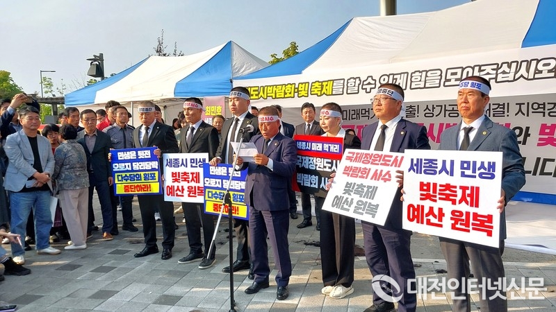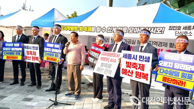 [대전인터넷신문=세종/최대열기자] 세종시의회 민주당 소속의원들이 당론으로 정한 세종 빛 축제와 국가 정원박람회 예산 삭감에 여권의 결집이 후폭풍으로 작용하고 있는 가운데 국민의힘 소속의원 전원이 8일 삭발식을 갖고 강력한 결의에 돌입했다.