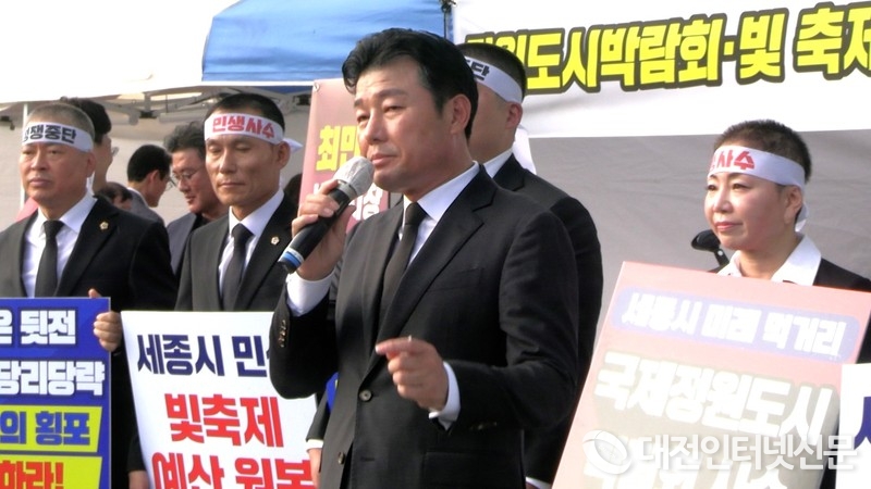 세종시의회 국민의힘 소속 의원 삭발식에서 이준배 시당위원장 민주당에 일침을..... [사진-대전인터넷신문]
