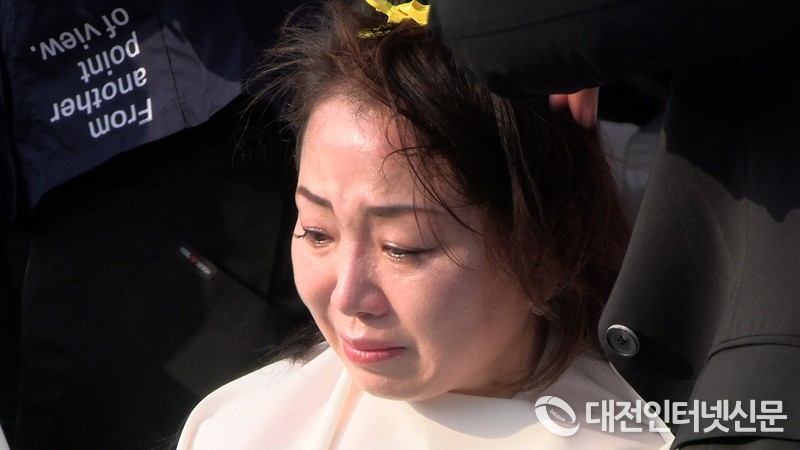 세종시의회 국민의힘 소속 의원 삭발식에서 눈물을 흘리며 결의를 다짐하는 홍나영 의원 [사진-대전인터넷신문]