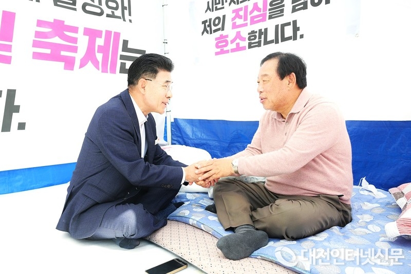 한편, 이날 오전 이장우 시장의 단식 호소 현장 방문에 이어 조원휘 대전시의회 의장과 최원철 공주시장이 연달아 현장을 찾아 최민호 시장을 지지했다.