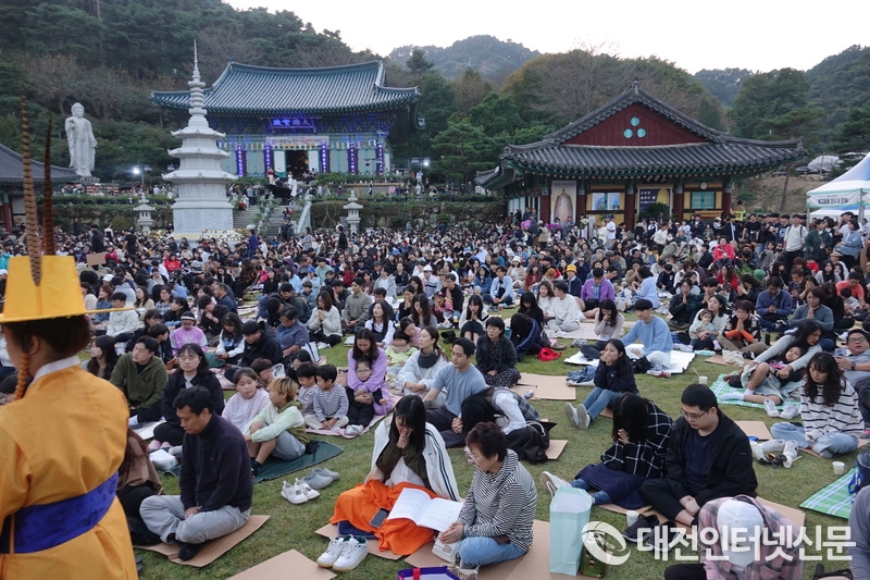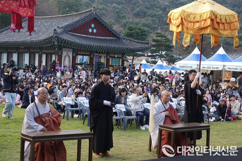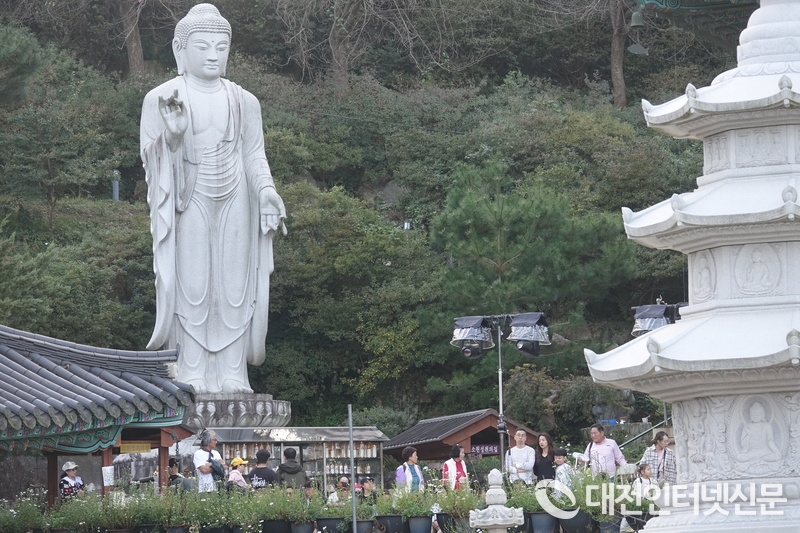 [대전인터넷신문=세종/최대열기자] 12일 주말을 맞아 늦게 핀 구절초의 자태를 감상하고 때마침 개최되는 ‘장군산 영평사 낙화’를 감상하기 위한 시민들로 영평사 경내는 북새통을 이뤘다.