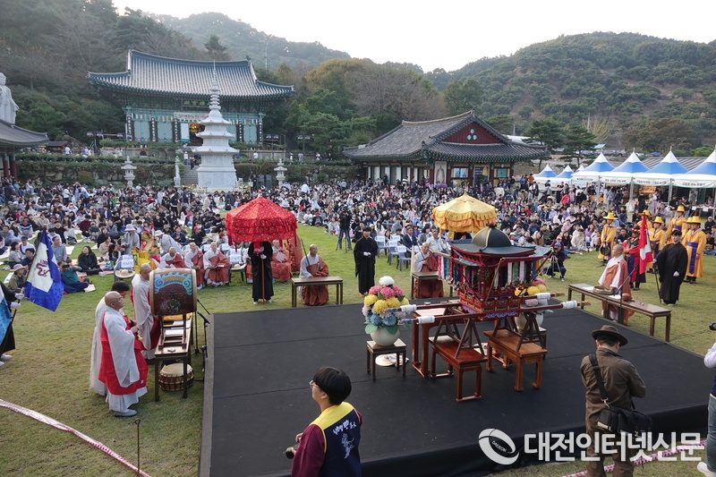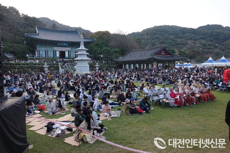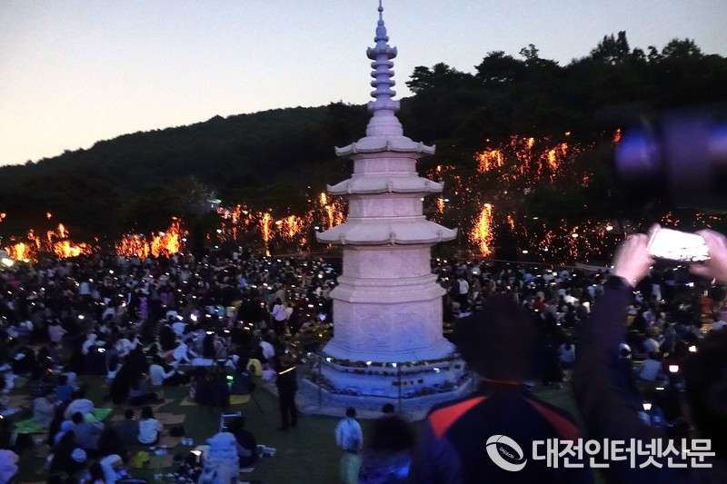 12일 장군산 영평사 낙화법에 참석한 시민과 불자가 인산인해를....[사진-대전인터넷신문]
