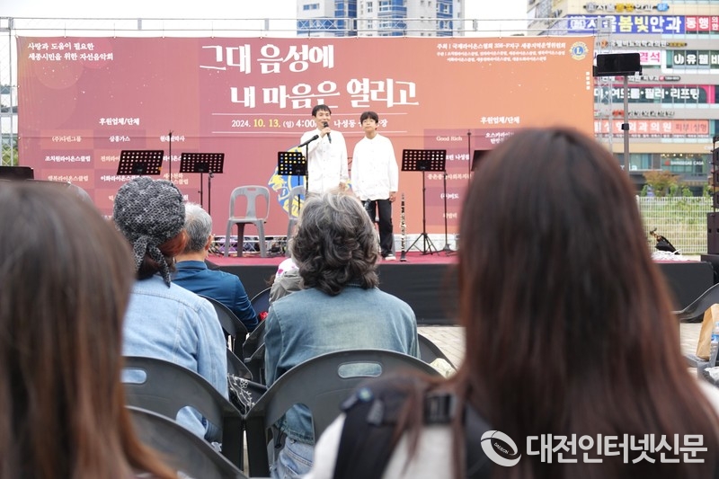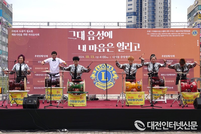 오늘 ‘사랑과 도움이 필요한 세종시민을 위한 자선 음악회’는 ▲색소폰 콰르텟, ▲세종 음악 동아리, ▲테너 구병래, ▲용띠 부자, ▲신나는 가요 장구 난타 등이 출연 약 2시간여 동안 방문객들을 가을 정취에 취하게 했고 주최 측은 이번 공연을 통해 국제라이온스협회 세종지역운영위원회 소속 클럽들의 봉사활동을 알리고 범시민 동참을 유도, 더 많은 소외계층을 돕기 위한 순수 자선공연으로 지속되길 희망했다.