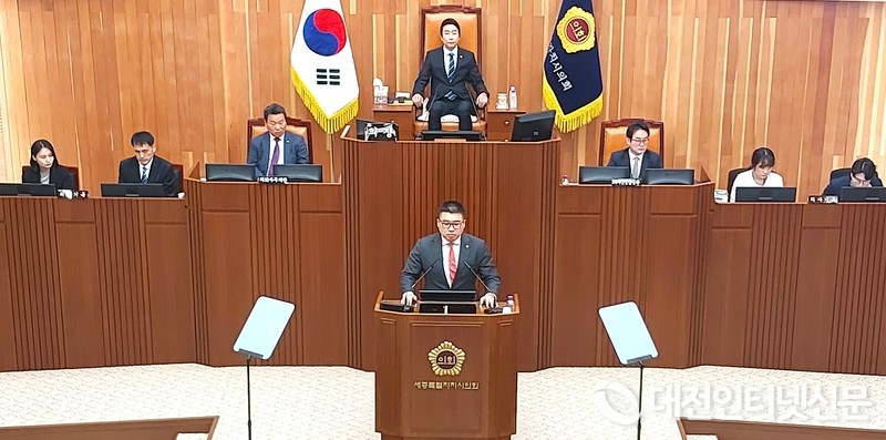 최원석 의원이 제94회 정례회 제1차 본회의에서 5분자유발언을 하고 있다. [사진-대전인터넷신문]