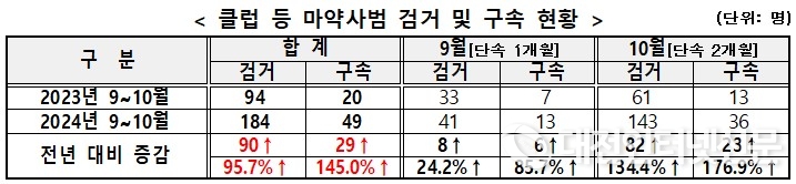 [대전인터넷신문=세종/최대열기자] 클럽 등에서 마약류 검거인원 및 압수량이 전년 같은 기간 대비 약 2배가 증가하면서 경찰이 최대 가용 인력을 투입, 유흥가 일대 마약류 특별단속을 실시한다.