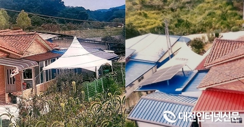소방공무원이 자신의 주택에 설치한 소방본부의 자산성 물품인 텐트가 마당에 설치된 모습. [사진-대전인터넷신문]