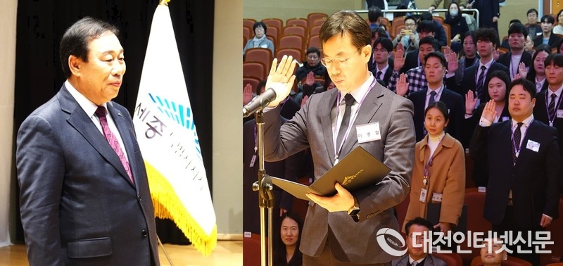 신규 공무원 대표로부터 공무원 선서를 받는 최민호 시장. [사진-대전인터넷신문]