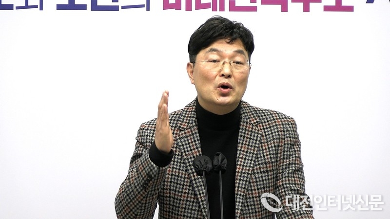자신을 세종시민이라고 소개 했다가 주관 단체가 아니냐는 질문에 결국 자신을 국민의힘 세종시당 대변이라고 소개한 남형민 대변인이 답변의 대부분을 주도하는 모습. [사진-대전인터넷신문]