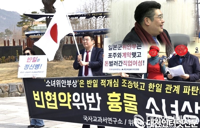 과거 일장기 게시와 일본군 위안부 여성들을 향해 포주와 계약맺고 돈 벌러간 직업여성이라고 주장한 뒤 파문이 일자 국민의힘을 탈당했던 목사가 이날 전 00일보 기자라며 반대를 옹호하늗 듯한 질문을 하면서 언론인들의 눈살을 찌푸리게 했다. [사진-대전인터넷신문]