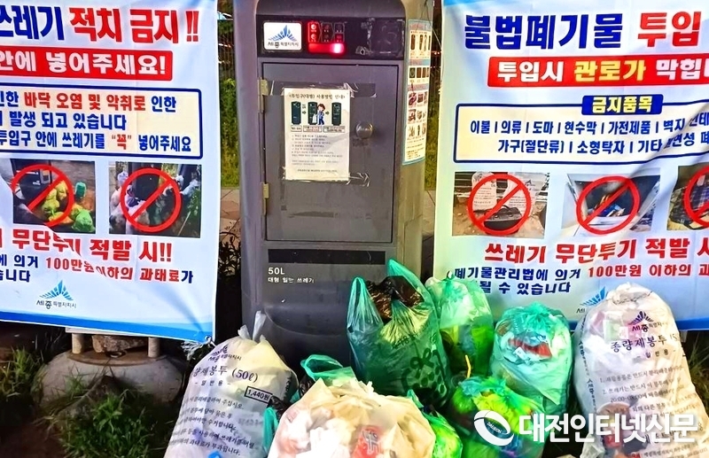 세종시의 크린넷 불법 투기 방지를 위한 홍보물을 비웃듯한..... [대전인터넷신문 db]