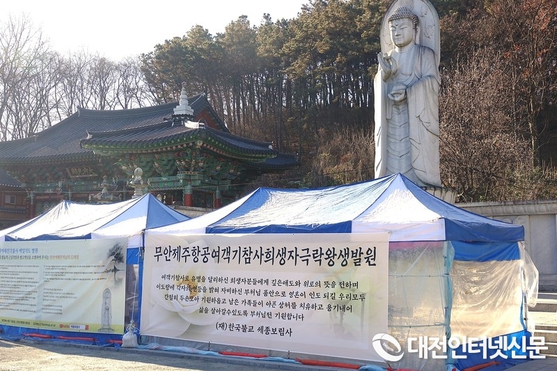 [대전인터넷신문=세종/최대열기자] 무안공항 제주항공 여객기 참사 희생자 179명의 극락왕생을 기원하는 영가 등과 추모제를 이어오던 세종시 연서면 보림사가 제주항공 참사 희생자 사십구재를 15일 오전 10시부터 발원한다.