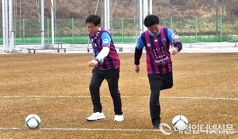 [대전인터넷신문=세종/최대열기자] 최민호 세종특별자치시장이 시를 연고로 한 남자 축구단 ‘세종 SA 축구단’의 올해 대한축구협회(KFA) K4-리그 첫 번째 홈 개막 경기에 시축자로 나섰다.