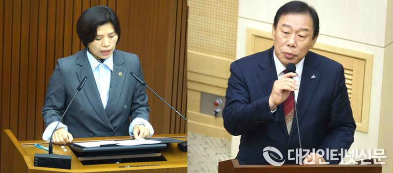최 시장의 이석을 두고 공방을 벌이는 김현옥 의원과 최 시장. [사진-대전인ㄴ터넷신문]