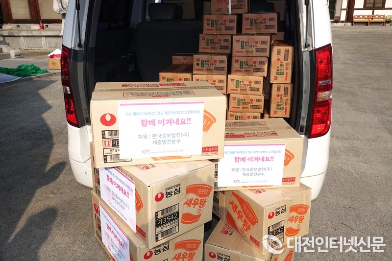 한편, 산불 지역 주민을 돕기 위한 나눔 행사에는 보림사(떡, 간장)를 비롯한 ㈜ 자모 콩이유(두부), 발효명가(쌀 빵), 산장가든(동치미), 신선농장(구운 계란), 마켓세종(바나나), 기림목장(우유) 등이 참여하면서 세종시 최초의 사찰 중심의 산불 현장 나눔이 지역 사회의 산불 돕기에 신호탄이 될 것으로 보인다.