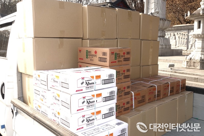 세종시 대표사찰인 보림사가 산불 지역 주민돕기선봉에나서면서 산불지역 돕기 확산을 주도하고 있다. 사진은 경남산불지역 구호품으로 사용될.... [사진-대전인터넷신문]