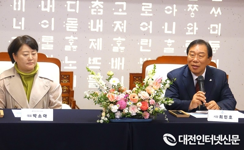 지난 3월 25일 세종시청 접견실에서 23년 8월에 설립된 운영업체와 업무협약을 체결하는 최민호 세종시장. [사진-대전인터넷신문]