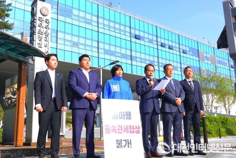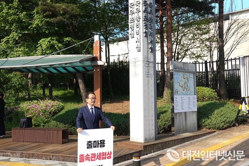 [대전인터넷신문=세종/최대열기자] 더불어민주당 강준현 국회의원(세종을, 민주당 정무위 간사)은 25일 오전 8시 10분부터 정부세종청사 국무조정실 앞에서 한덕수 권한대행을 규탄하는 1인 시위를 진행했다.