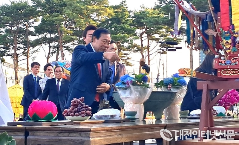 불기 2569년 부처님오신날 봉축 법요식이 세종 중앙공원 일원에서 봉행 됐다. 사진은 최민호 세종시장이 욕불을... [사진-대전인터넷신문]