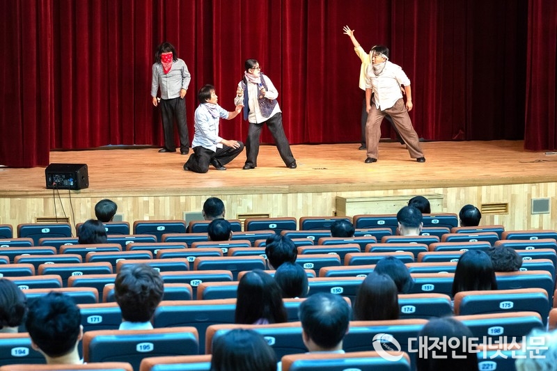 마당극단 ‘좋다’의 6월 항쟁 마당극 ‘기면 기고 아니면 아니다’ 공연장면. [사진-세종시교육청]최교진 교육감은 1987년 민주화 투쟁의 중요성을 언급하며, "지금 이 시점에서 학교 현장에서 민주시민교육을 어떻게 주도적으로 펼쳐갈 수 있을지 고민이 필요하다"고 강조했다. 또한, 새 정부의 교육정책 변화에 주목하며, 공교육 강화 정책과 기존 정책의 접목을 통해 세종시교육청의 방향성을 모색할 것을 당부했다.