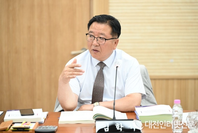 김재형 산업건설위원장은 미흡한 조례 정비의 중요성을 지적하며, 친환경종합타운 조성사업의 철저한 관리 필요성을 강조했다.[사진-세종시의회]