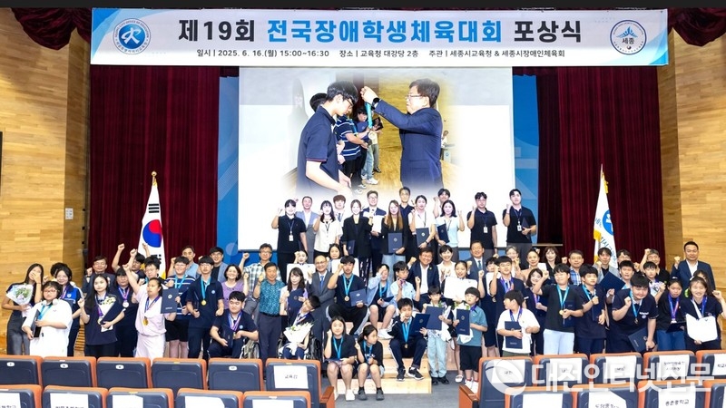 [대전인터넷신문=세종/최대열기자] 세종특별자치시교육청은 지난 6월 16일, 교육청 청사 대강당에서 '제19회 전국장애학생체육대회'에 참가한 선수들을 위한 포상식을 개최했다. 이번 포상식은 지난 5월 13일부터 16일까지 경상남도 일원에서 열린 대회에 참가한 세종시 선수단의 성과를 기념하고 격려하기 위해 마련됐다.