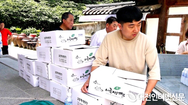 세종 보림사에서 전의면 수혜민과 피해복구를 위한 떡과 얼음생수를.... [사진-대전인터넷신문]
