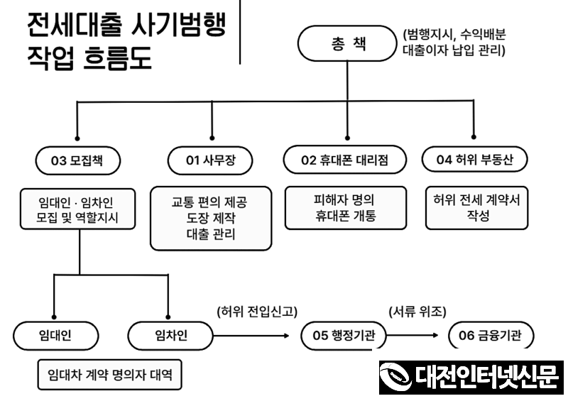 [대전인터넷신문=세종/최대열기자] 세종경찰청(청장 한원호) 강력마약범죄수사대는 인터넷 역할 대행업체를 통해 모집한 공범들과 함께 가짜 임대인·임차인 역할을 꾸며내며 전세자금 대출을 편취한 일당 19명을 검거했다고 27일 밝혔다.
