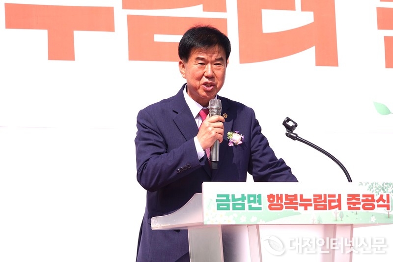 최민호 세종시장이 금남면 행복누림터 준공식에서 축사를 하고 있다. [사진-대전인터넷신문]