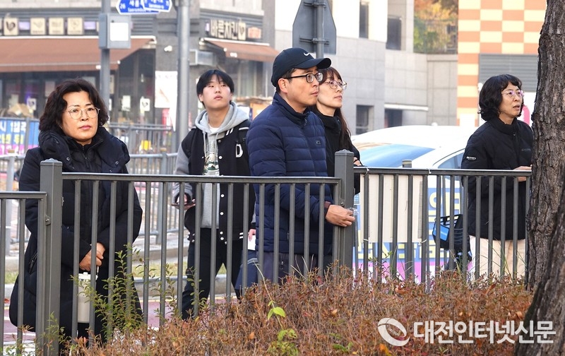 그동안의 노력이 결실을 맺기를 기원하면며 수험생 입실을 지켜보는 학부모의 표정이 짠한 여운을 남겼다. [사진-대전인터넷신문]