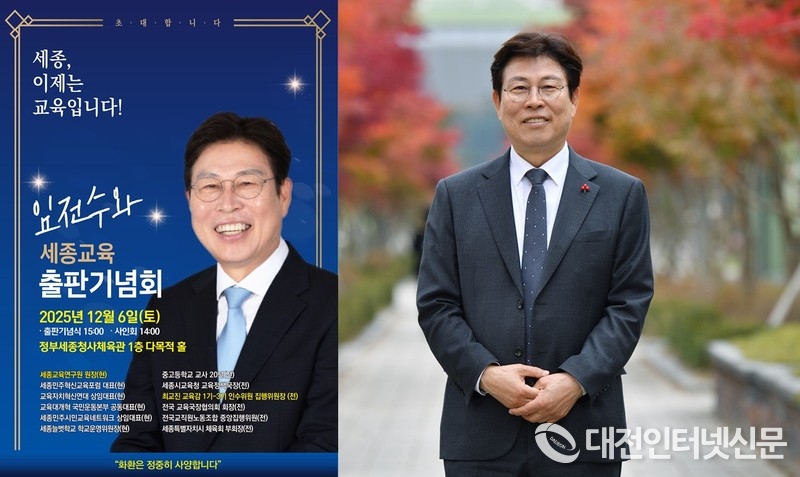 [대전인터넷신문=세종/최대열기자] 세종시 교육정책을 이끌어온 임전수 전 세종교육연구원장이 지난 10년간의 세종교육 변화를 기록하고 미래 방향을 성찰한 저서 『임전수와 세종교육』 출판기념회를 오는 12월 6일 정부세종청사체육관에서 개최한다.