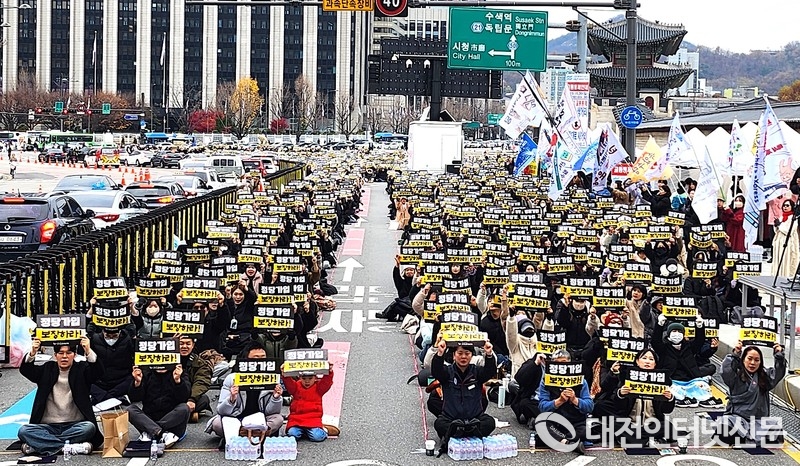 세종교사노동조합(위원장 김예지)은 11월 29일 경복궁 동십자각에서 열린 교사노조연맹 주최 ‘<교사도 시민이다> 교사 정당가입 허용 촉구 집회’에 적극 참여했다고 밝혔다. 주최 측에 따르면 이날 집회에는 약 1만 명이 모였으며, 세종에서도 200여 명이 현장을 찾으며 높은 관심과 참여 의지를 보였다. 세종교사노조 집행부는 홍보와 질서 유지, 퍼포먼스 지원 등 행사 운영 전반에도 직접 참여하며 집회 진행을 지원했다.