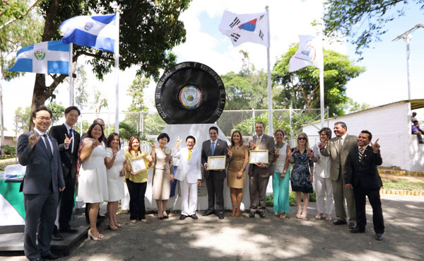 | ▲ 엘살바도르 라리베르다드 주 산타테클라시에서 지난 10일(현지시간) HWPL 기념비 제막식이 열렸다. 관계자들이 단체사진을 촬영하고 있다. (사진제공 하늘문화세계평화광복) |