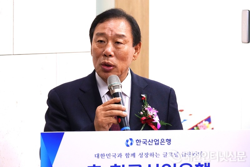 19일 한국산업은행 세종지점이 세종시 어진동 단국세종빌딩에서 개점식을 갖고 영업을 개시했다. 사진은 김복규 산업은행 수석부행장이 인사말을 하고 있는 모습. [사진-대전인터넷신문]