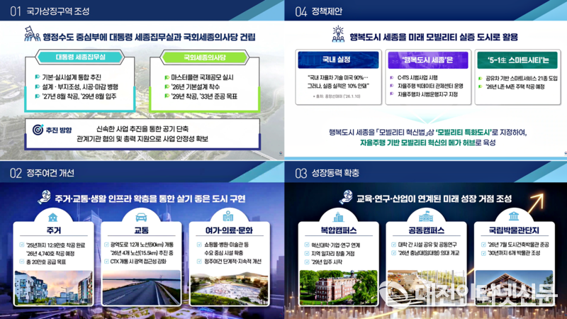 [대전인터넷신문=세종/최대열기자] 1월 13일 정부세종청사 국토교통부 산하기관 업무보고에서 대통령 세종집무실·국회 세종의사당 건립 가속이 공식화되자, 과거 대중교통 중심 인프라 수요예측 논란을 둘러싸고 행복청의 설계·총괄 역량을 의심하는 부정적 여론도 커지고 있다.
