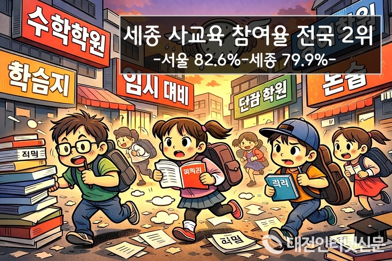 [대전인터넷신문=세종/최대열기자] 교육부와 통계청이 12일 발표한 ‘2025년 초중고 사교육비 조사’에서 세종시 사교육 참여율이 79.9%로 서울에 이어 전국 2위를 기록한 가운데 세종시교육청은 “전년 대비 참여율이 낮아졌다”고 평가했지만 학부모들은 “학교 교육만으로는 학습 경쟁에서 뒤처질 수 있다는 불안감이 있다”고 말해 공교육 경쟁력 강화와 사교육 의존 구조 개선이 과제로 떠오르고 있다.