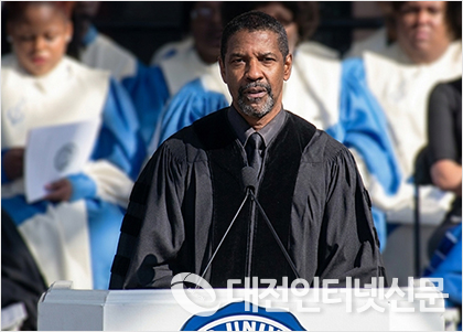 '덴젤 워싱턴'이 연단에서 학생들에게