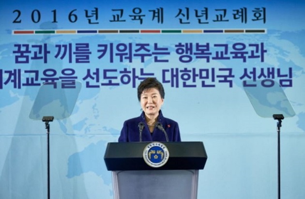 박근혜 대통령은 오늘 오전 세종문화회관에서 열린 2016년 교육계 신년교례회에 참석해 교육계 지도자들의 지난 한해 노고를 격려하고 올해 교육정책의 성공적 추진을 위해 협조를 당부하였다.