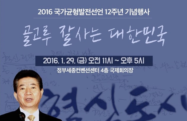 국가균형발전선언 12주년 기념행사 1월 29일 (금)11시 세종시에서 ...`골고루 잘사는 대한민국´주제