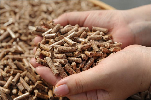 <목재펠릿: 목재나 제재소에서 나온 부산물을 톱밥으로 분쇄한 뒤 높은 온도와 압력으로 압축해 만든 바이오 연료>