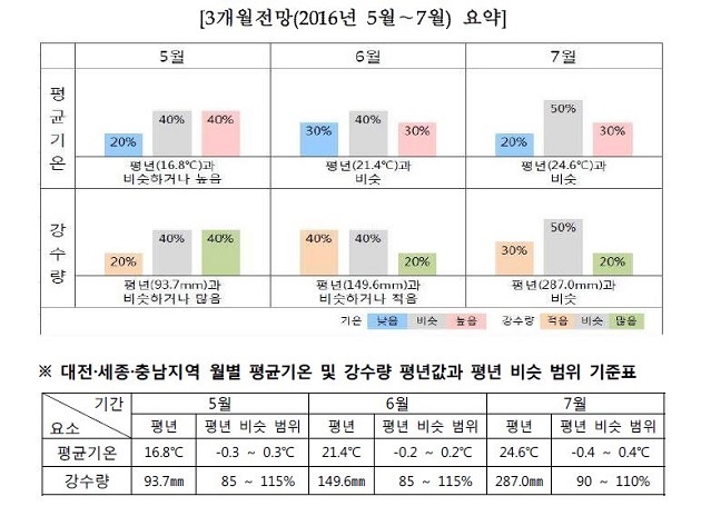 | ▲ 기상청의 날씨 3개월전망(2016년 5월~7월) 요약 |