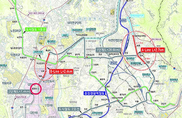 대전시의회 송대윤 의원(유성구1, 더불어민주당)은 제225회 임시회 제1차 본회의 5분발언을 통해 A와 B노선으로 계획중인 도시철도 2호선 시범노선 중 유성구 B노선을 충남대부터 목원대까지 연장하는 방안을 건의하였다.