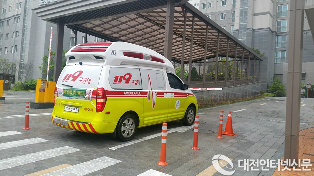 | ▲ 차량출입차단기에 가로막힌 구급차 |