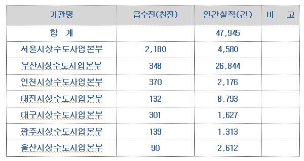 | ▲ 7개 광역자치단체 수도요금 누진완화 가구분할 신청 현황 |