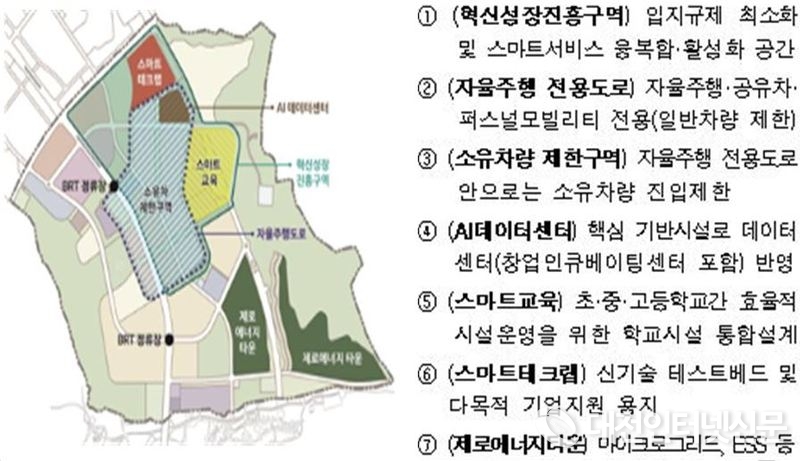 또한 퍼스널 모빌리티에 최적화된 도로설계, 스마트 횡단보도나 스쿨존 안전서비스 등 보행자를 위한 요소도 공간구상에 반영하고 도시 내 개인소유 자동차 수를 1/3 수준으로 점차 감소시켜, 자동차 중심이 아닌 사람 중심의 걷기 좋은 도시를 만들 계획이다.