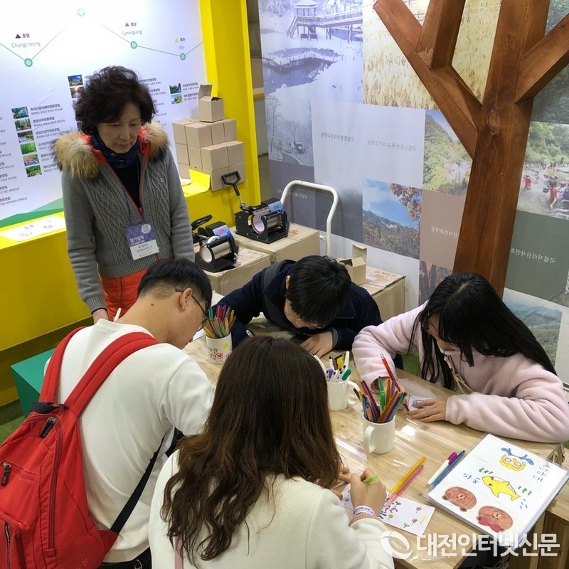 2018년 내나라 여행 박람회 국립자연휴양림 홍보체험관에서 체험프로그램을 즐기는 방문객 모습(사진-산림청)