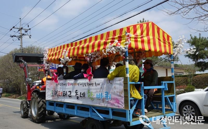 트랙터타고 동네 한 바퀴에 어린아이보다 먼저 탑승한 어르신들이 추억을 끌어 올리며... [사진-대전인터넷신문]